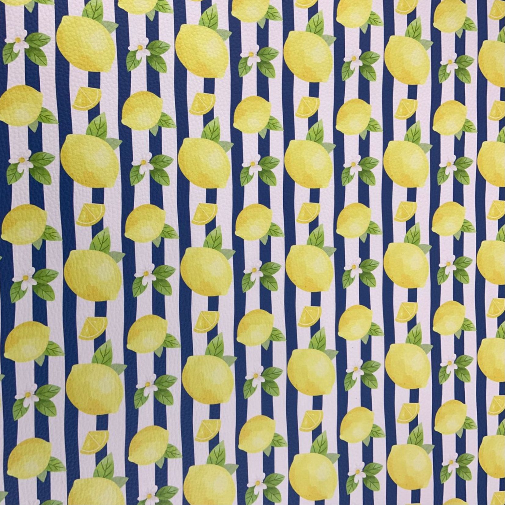 Sintético Doll/Dollaro Limão Siciliano Listras/ Azul Marinho 50cm