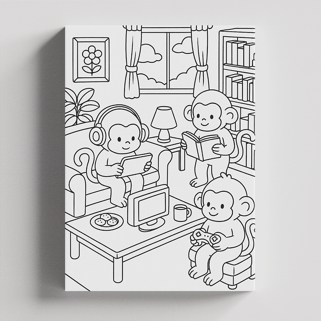 Quadro Canvas Pintura Macacos Lazer 20cmX30cm Borda Infinita CHASSI 2cm OUTLET