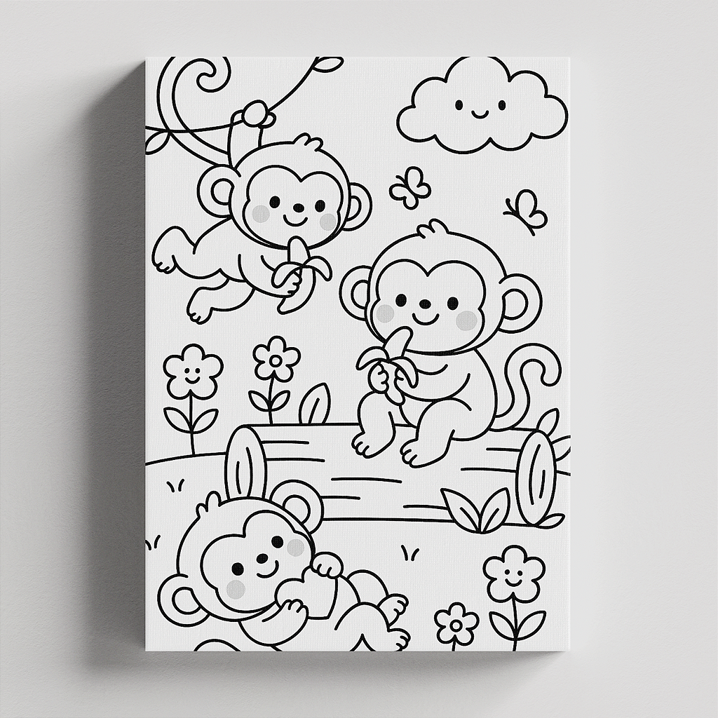 Quadro Canvas Pintura Macacos Proseando 20cmX30cm Borda Infinita CHASSI 2cm OUTLET