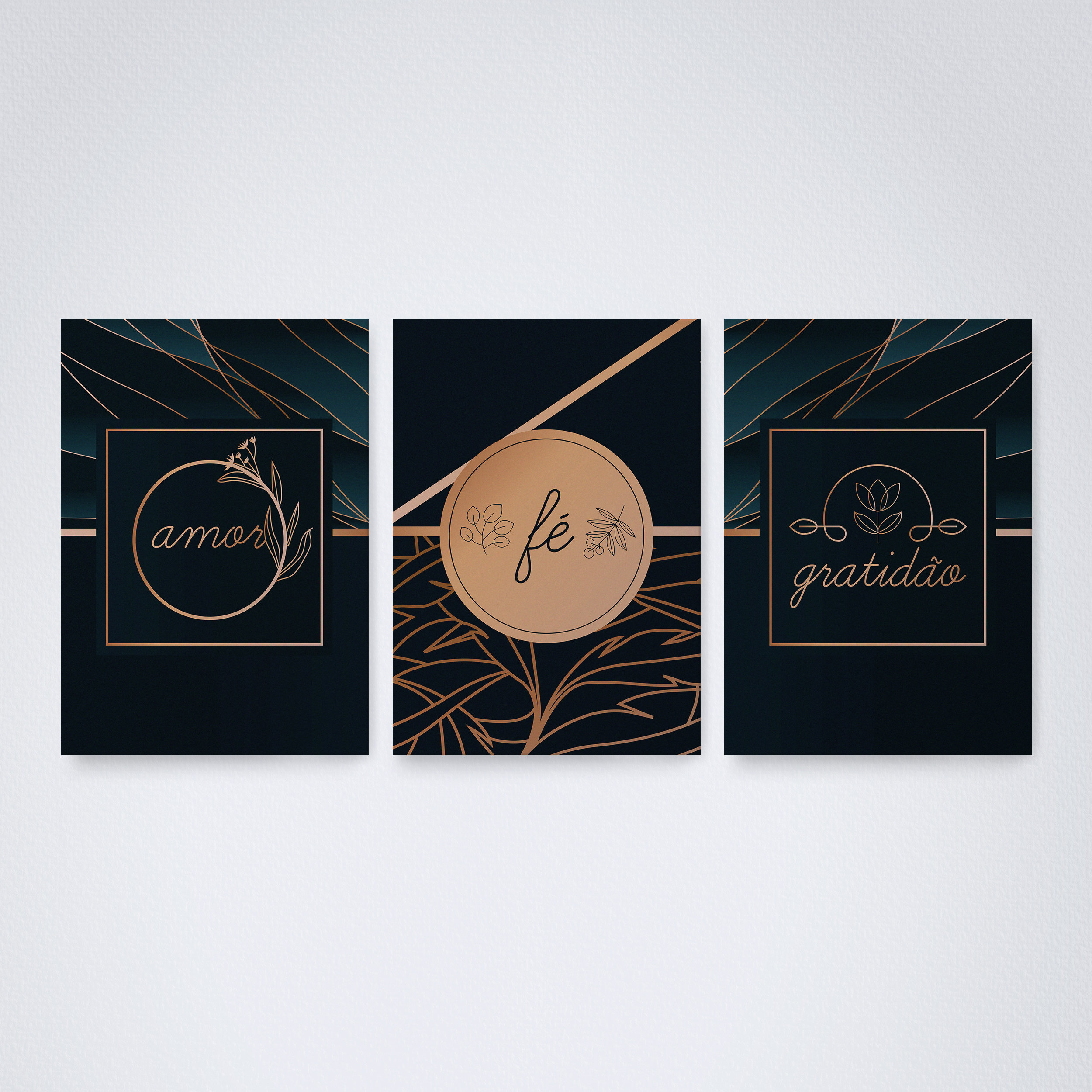 Trio Quadro Canvas Amor Fé Gratidão 2