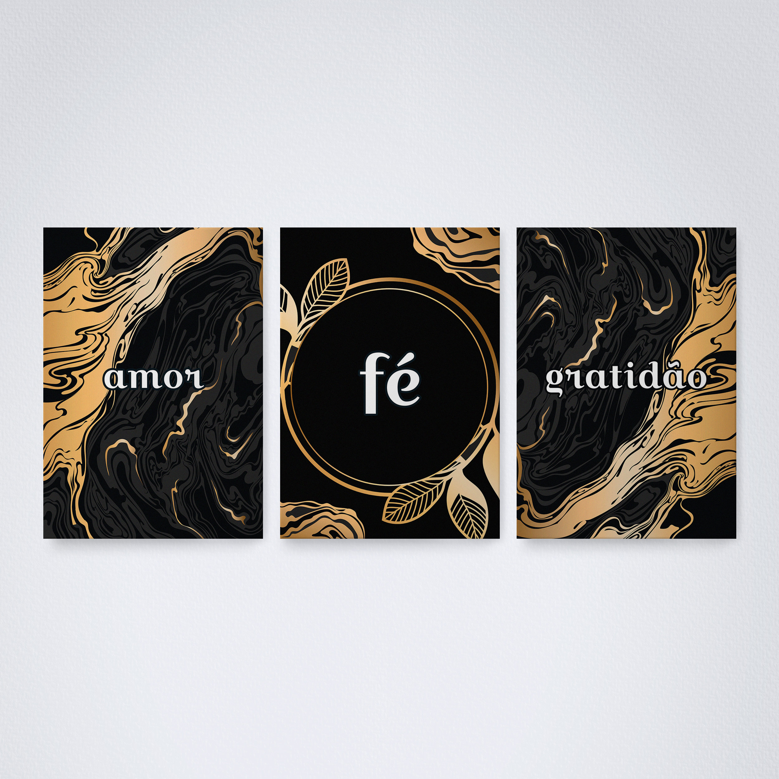 Trio Quadro Canvas Amor Fé Gratidão 3